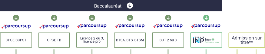 Chaque année, ce sont plus de 150 étudiants qui intègrent la formation d'ingénieur agronome d'AgroToulouse en 1ère année par des voies d'admission aussi diversifiées que sélectives.